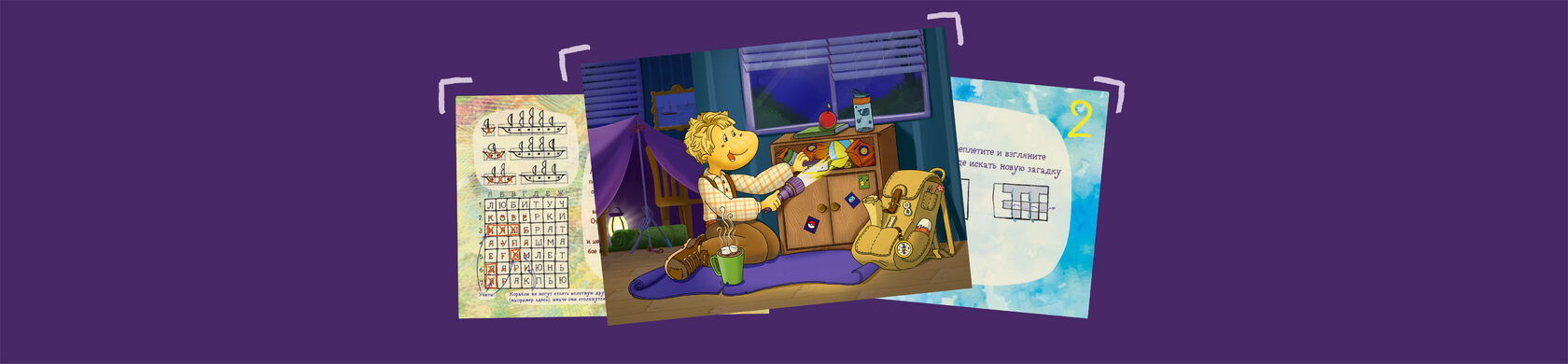 Текст открытки нужно прочитать задом наперед. Получится следующее: "На обратной стороне открытки вы видите часть семейной фотографии. Всего она состоит из 6 частей, все уже у вас. Сложите их, и вы узнаете, где братья спрятали подарок.